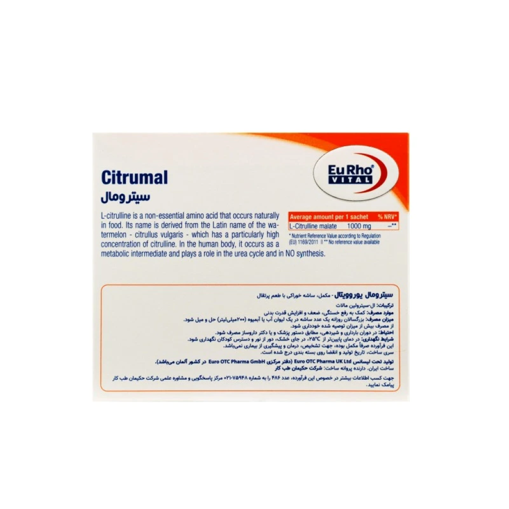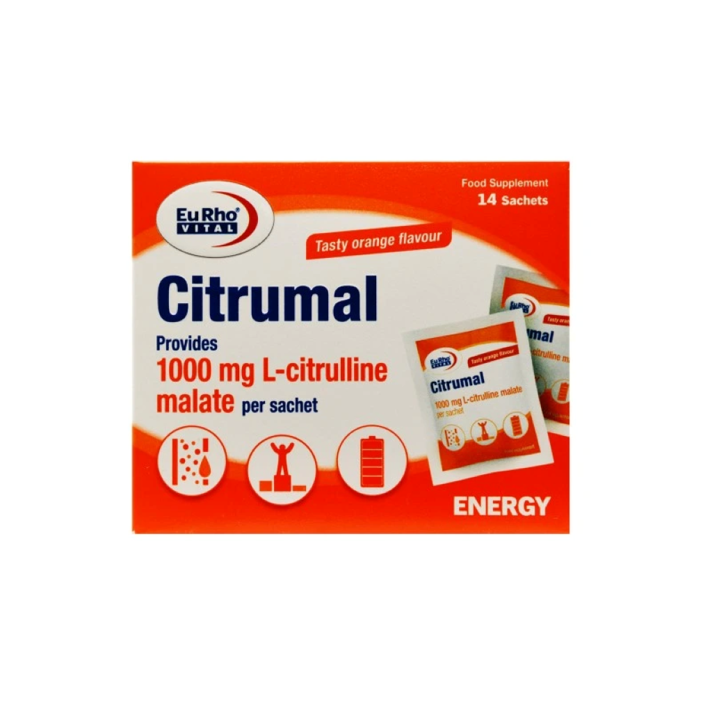 ال-سیترولین آمینو اسیدی است که بهطور طبیعی در بدن تولید میشود و در مواد غذایی نیز وجود دارد. هندوانه سرشار از سیترولین است و نام این ترکیب نیز از نام لاتین هندوانه “Citrullus vulgaris” گرفته شده است. سیترولین در بدن تبدیل به آمینو اسید ال-آرژینین شده و در بسیاری از عملکردهای حیاتی مشارکت میکند. ساشه سیترومال یوروویتال حاوی 1000 میلیگرم ال-سیترولین مالات است که به افزایش سطح انرژی، ارتقای عملکرد ورزشی، کاهش فشار خون و بهبود اختلال نعوظ در آقایان کمک میکند.