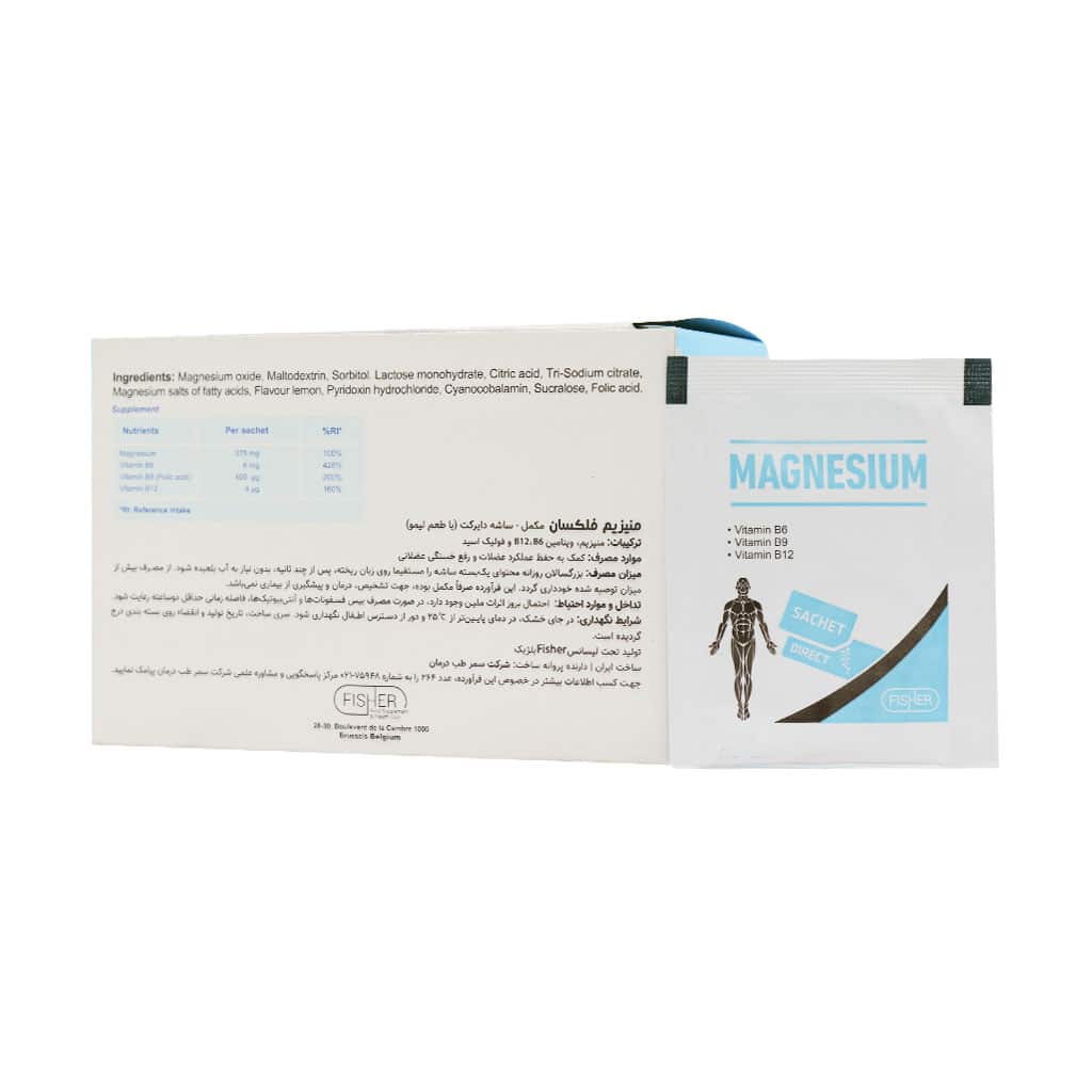 ساشه منیزیم فیشر فلکسان با فرموله کردن دوز مطلوبی از منیزیم در کنار سه ویتامین B6، B12 و فولیک اسید به بهبود عملکرد عصبی، گرفتگی عضلات، کاهش خستگی، کاهش علائم سندروم پیش از قاعدگی، کاهش سردردهای میگرنی و بهبود کیفیت خواب کمک میکند. قابل ذکر است که در کنار این محصول میتوانید از قرص میگرن برای تسکین دردهای ناشی از این بیماری، استفاده کنید.