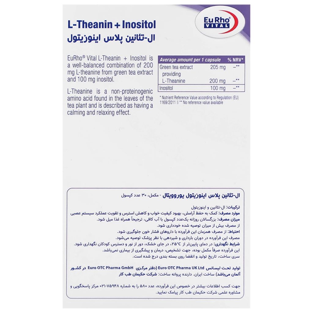 ویژگی های کپسول ال-تئانین پلاس اینوزیتول یوروویتال